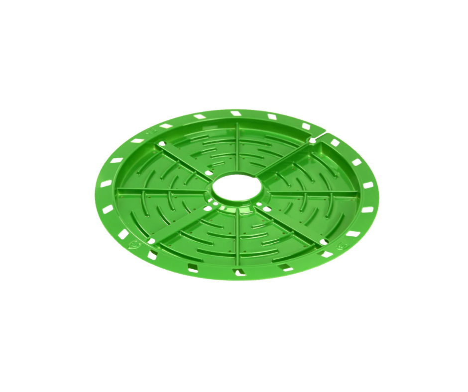 In the Matrix System water and nutrients travel into the Circulator, hit the slope of the Matrix and are pushed outward into eight maze sections that have individual holes dripping the water and nutrients onto the Wicking Pad. There are eight slices to the pie, each section is fed the same amount, going through the maze for even distribution. The Matrix pad is a capillary mat used for wicking.